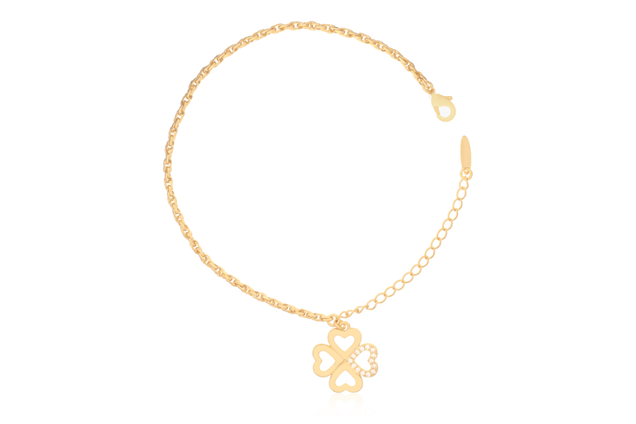 PULSEIRA BANHADO EM OURO ELO 150mm ESPESSURA DUPLO PONTO DE LUZ 5mm E CORAÇÃO PATA 1550mm LARGURA