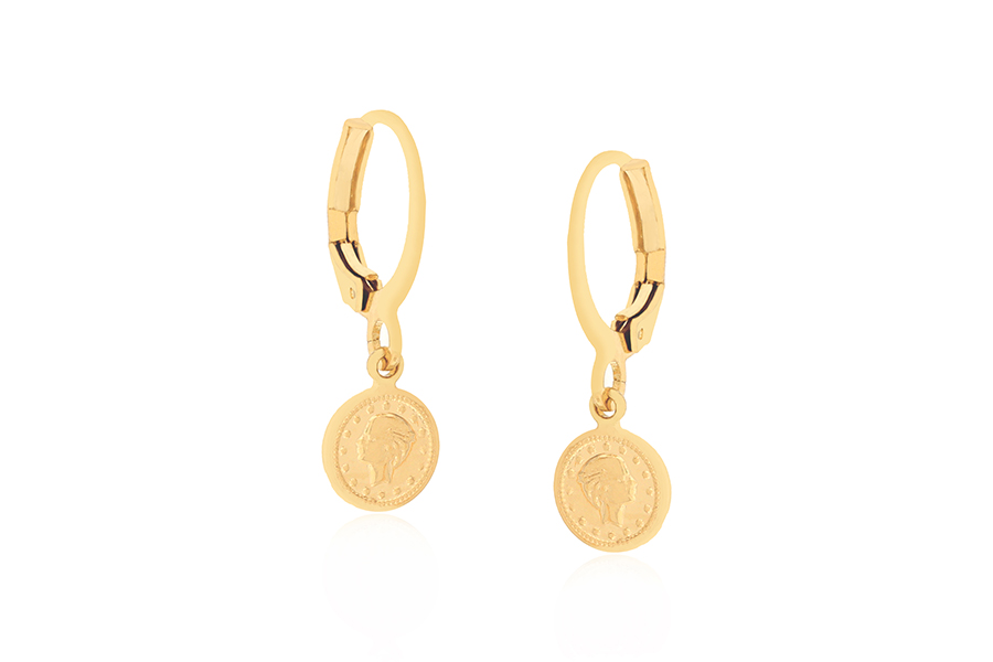 BRINCO BANHADO EM OURO, PIZZA 12mm DE DIÂMETRO