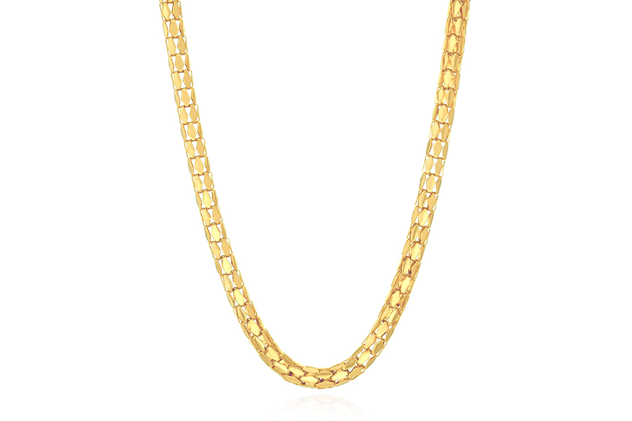 CORRENTE BANHADA EM OURO, ELO VENEZIANA 0,80mm, 45cm COMPRIMENTO, EXTENSOR 5cm COMPRIMENTO E PESO 2,20g