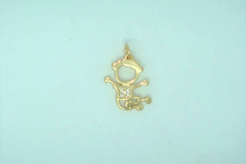 PINGENTE BANHADO EM OURO, MENINO, COM 2 ZIRCONIAS E 16mm ALTURA