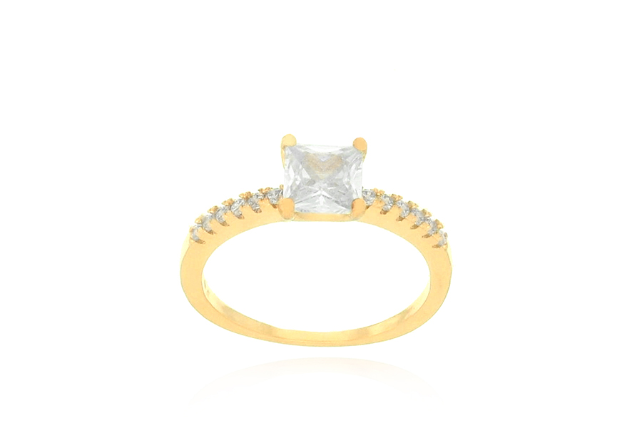 ANEL BANHADO EM OURO, SOLITÁRIO, ZIRCÔNIA QUADRADA 8mm, COM 235 ZIRCÔNIAS