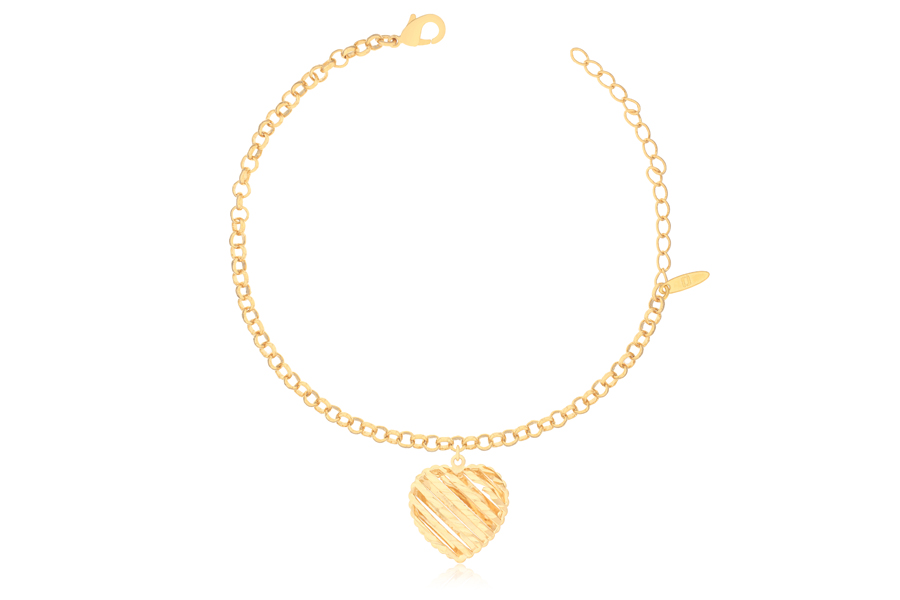 PULSEIRA BANHADO EM OURO INFANTIL ELO PORTUGUÊS 2mm 12cm COMPRIMENTO E CORAÇÃO LOVE 750mm LARGURA