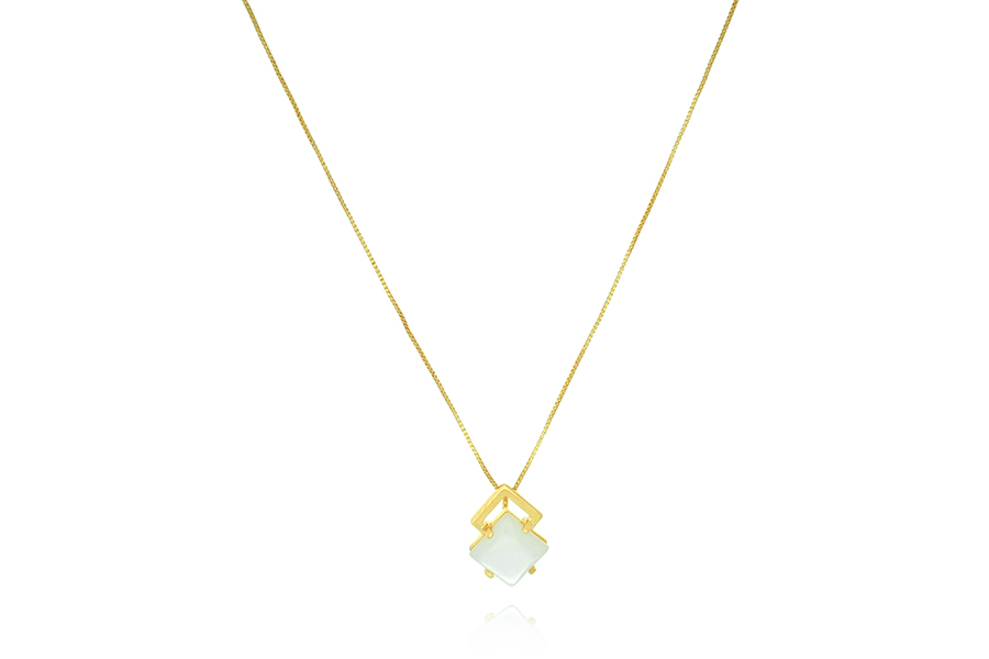 GARGANTILHA BANHADA EM OURO, CRISTAL FUSION RETANGULAR 10x8mm, ELO 1,50mm LARGURA, 40cm COMPRIMENTO E EXTENSOR 10cm COMPRIMENTO